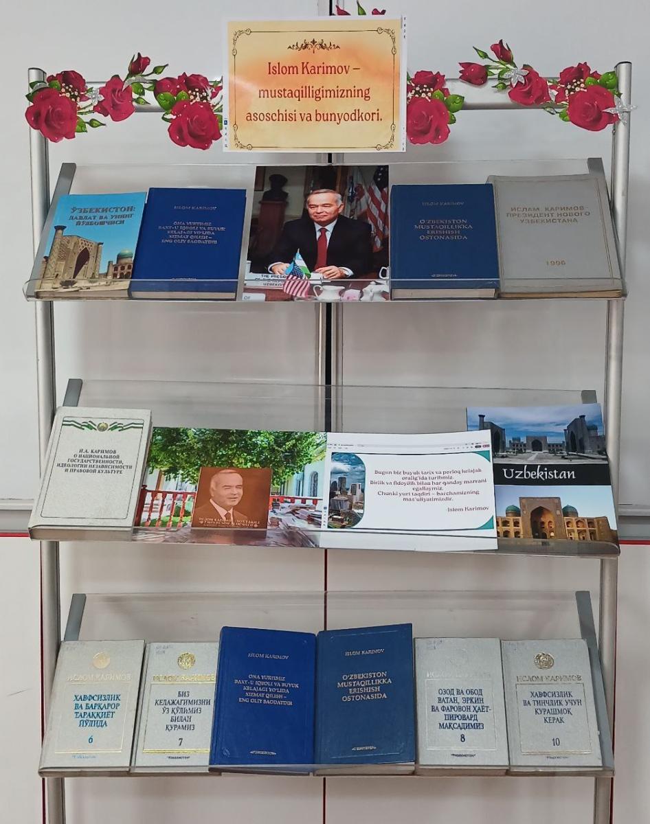 Oʻzbekiston Respublikasi Birinchi Prezidenti Islom Abdugʻaniyevich Karimov tavalludining 88 yilligiga bagʻishlangan ushbu ko‘rgazmada Birinchi Prezidentimiz faoliyatini aks ettiruvchi adabiyotlar namoyon etilgan bo‘lib, bunda ularning siyosiy nutqlari, uchrashuvlari hamda asarlarining chuqur tahlili o‘rin olgan.