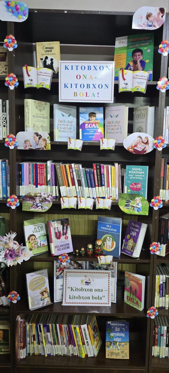 “Kitobxonlik oiladan boshlanadi: Kitobxon ona – kitobxon bola” mavzusida kitob koʻrgazmasi va bibliografik sharh tashkil etildi.