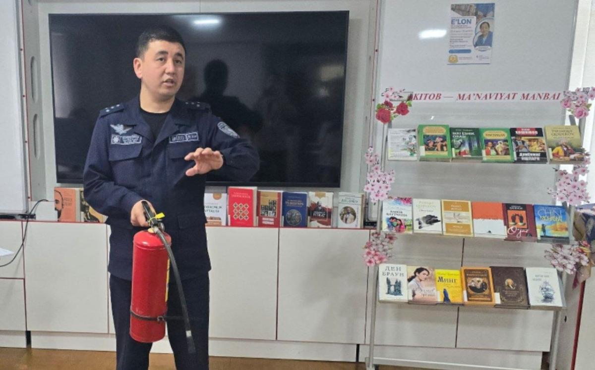 Tadbir doirasida Mirzo Ulug‘bek tuman Favqulodda vaziyatlar boshqarmasining bosh inspektori Aziz Axmedov tashrif buyurib, kutubxona xodimlari uchun favqulodda vaziyatlarda, xususan, yong‘in sodir bo‘lganda amal qilinishi lozim bo‘lgan xavfsizlik qoidalari yuzasidan profilaktik dars o‘tkazdi.