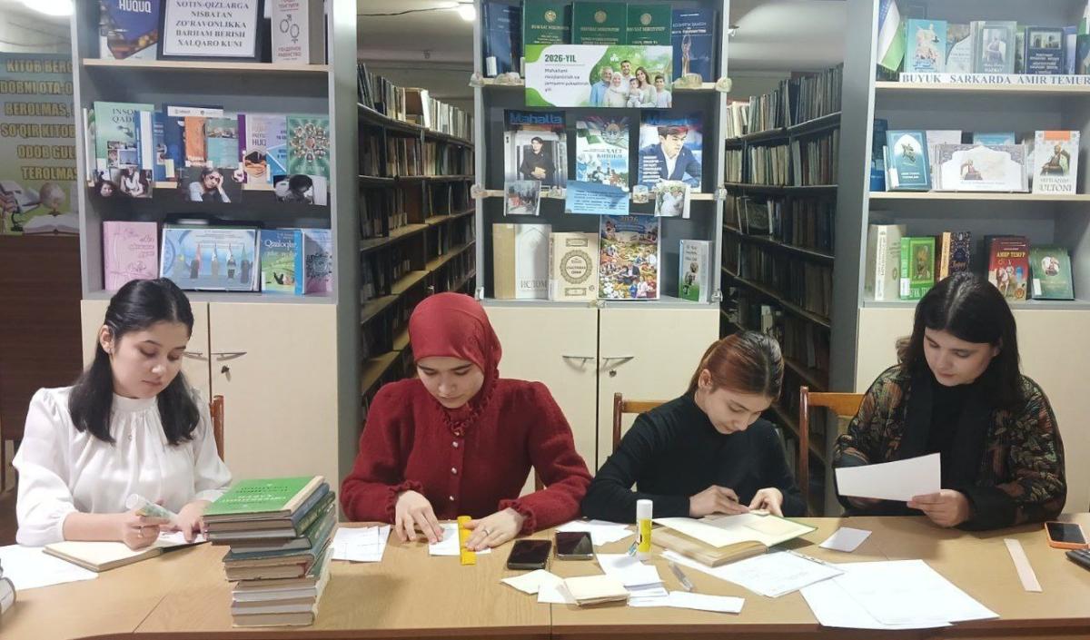 Bo‘lim mutaxassislari koʻrsatmasi asosida amaliyotchilar kitoblarni tartibga solish, bo‘limlarga taqsimlash va fonddagi joyini belgilash ishlarini bajarishdi.