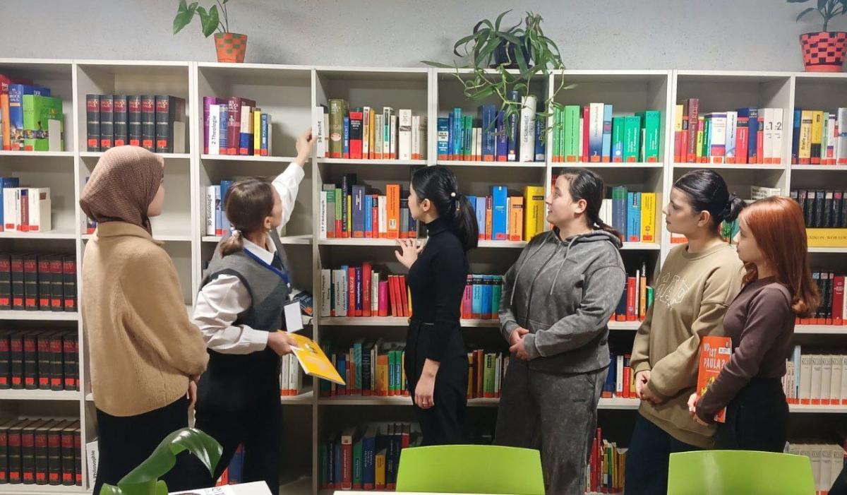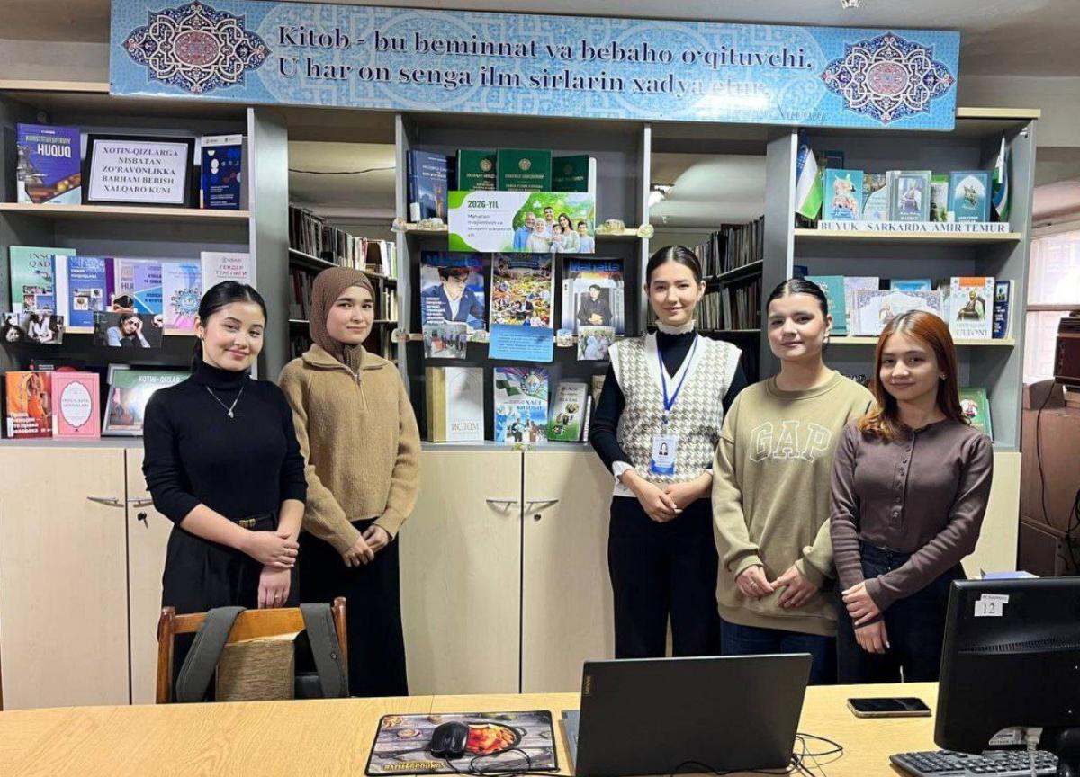Amaliyot jarayonida talabalar kutubxona qoidalari bilan tanishib, axborot-kutubxona markaziga a’zo bo‘ldilar.