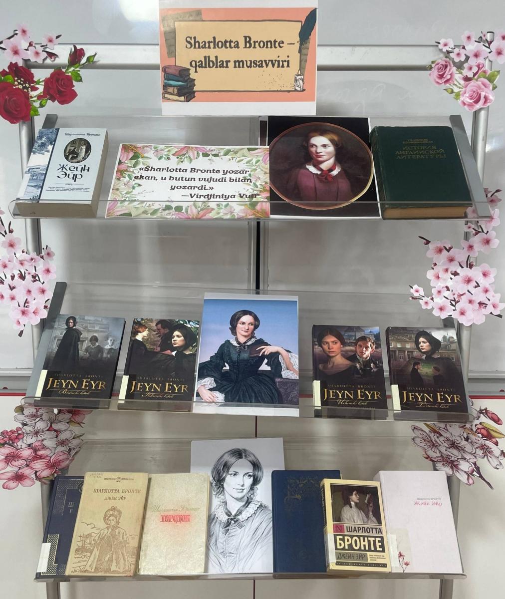 Kitob ko‘rgazmasi ingliz adabiyotining yirik namoyandasi, jahon adabiyotida o‘ziga xos o‘rin egallagan Sharlotta Brontening ijodiy merosiga bag‘ishlandi. Unda yozuvchining inson ruhiyati, his-tuyg‘ulari va ayol qalbining nozik kechinmalarini chuqur ifodalagan asarlari yoritildi.