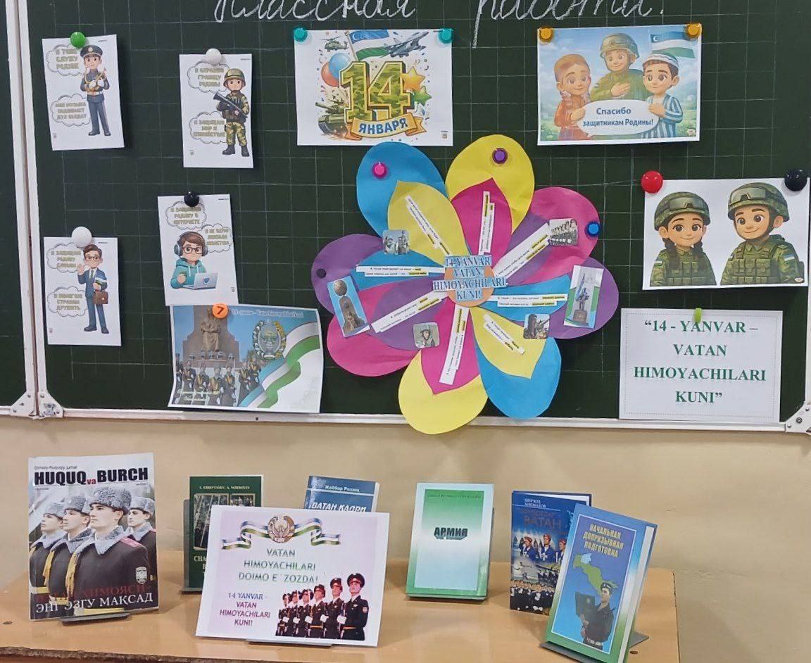 Tadbirda Vatan himoyachilarining jasorati, fidoyiligi va mardligi haqida soʻz yuritilib, yosh avlod qalbida vatanparvarlik tuygʻularini mustahkamlashga alohida e’tibor qaratildi. Mutaxassislar tomonidan mavzuga oid taqdimot, kitoblar koʻrgazmasi va kitoblar koʻrgazmasining bibliografik sharhi oʻtkazilib, oʻquvchilarga harbiy-vatanparvarlik ruhidagi adabiyotlar tanishtirildi.