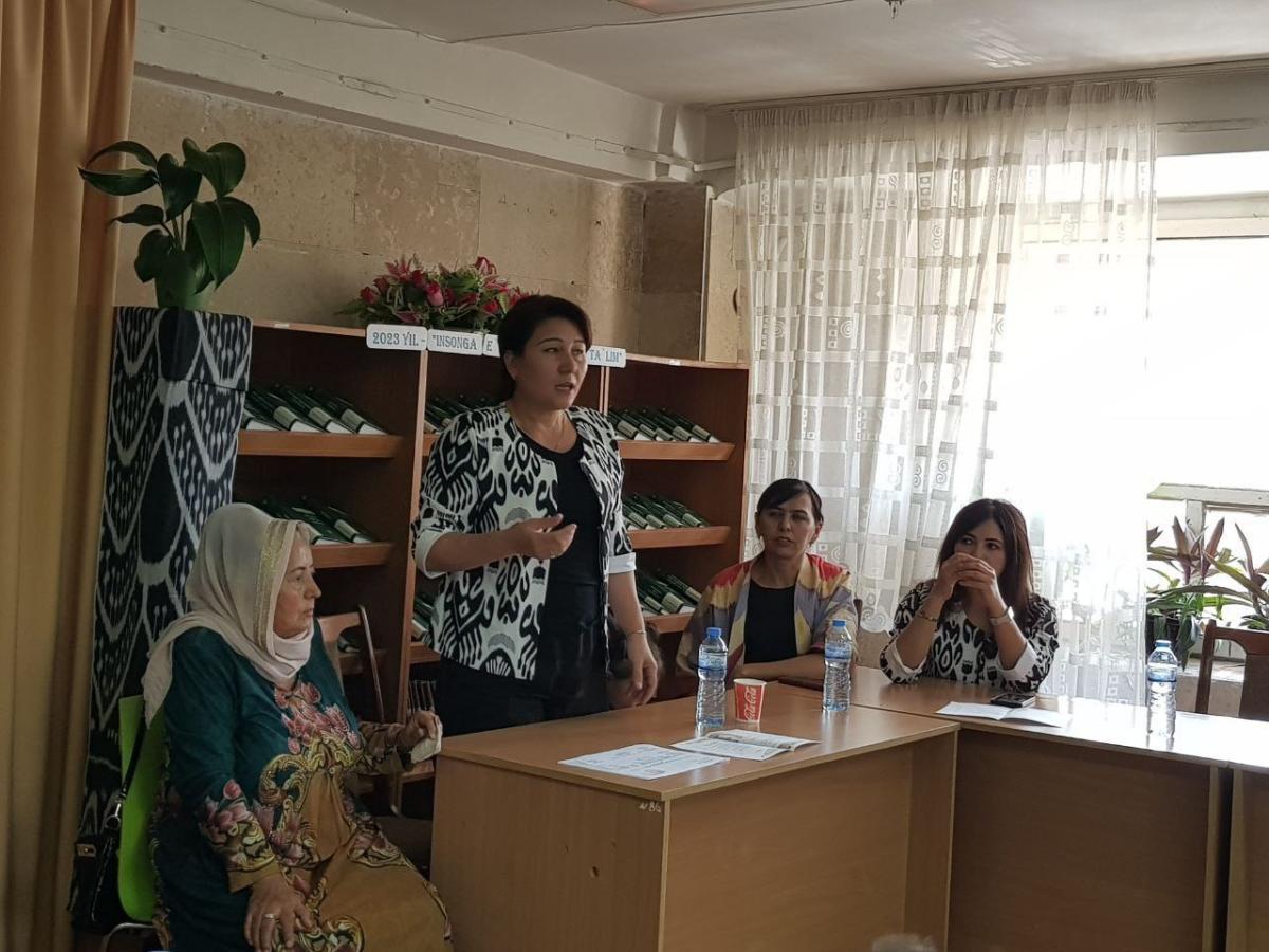 Tadbir ishtirokchilari "Milliy qadriyatlar tarannumi", hamda "Ayol jamiyat gultoji, borliq ko'zgusi, millat tarbiyachisi!" nomli kitob ko'rgazmalari bilan tanishdilar.