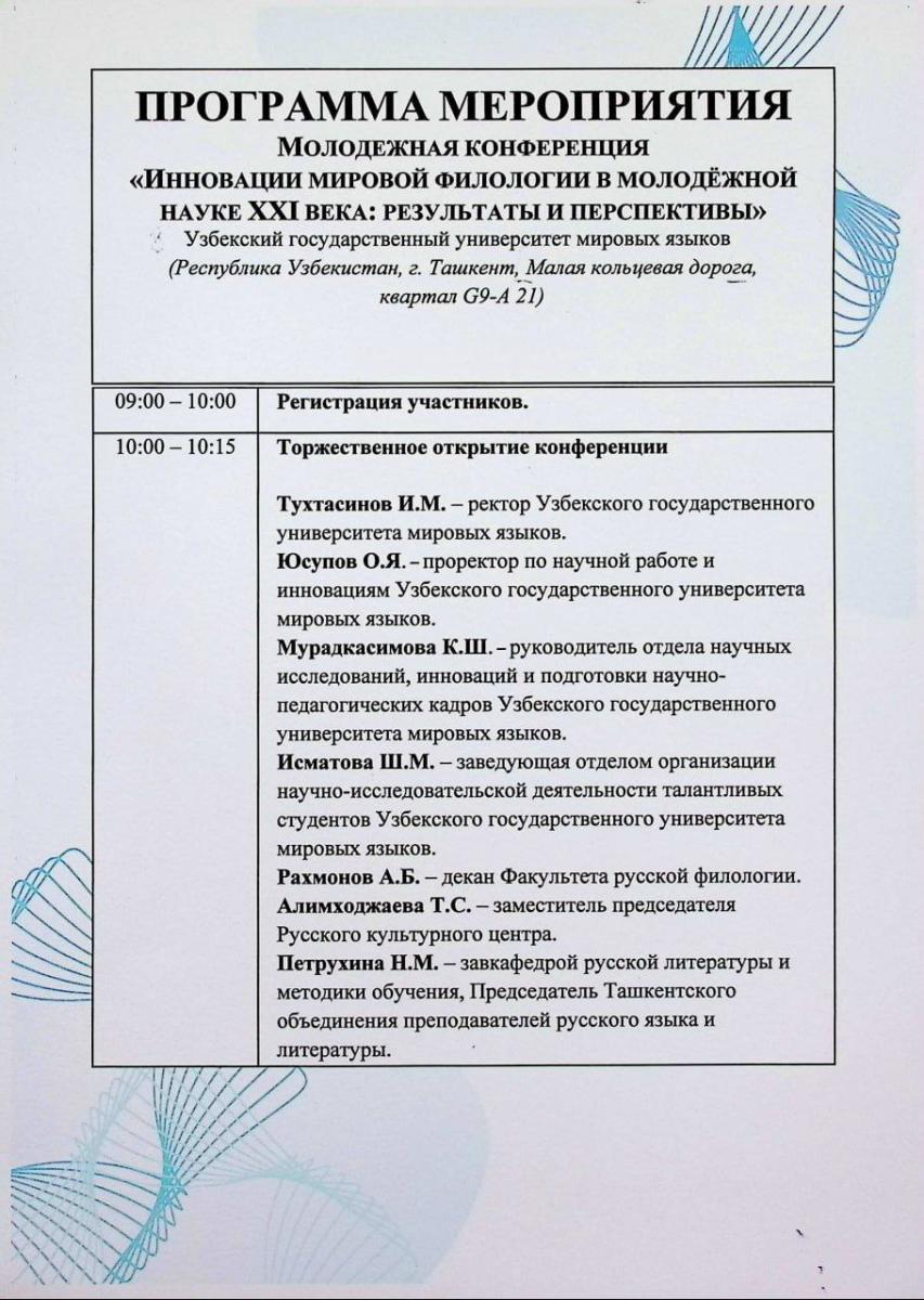 “XXI asrda jahon filologiya fanida innovatsiyalar: natijalar va istiqbollar” mavzusida yoshlar konferensiyasi